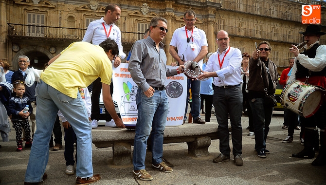 La espectacular caravana, que llegaba a la Plaza Mayor de la capital charra, estaba formada por coches que marcaron una época como Citroën 2CV, Dyane 6, Mehari y otros derivados.
